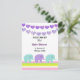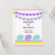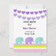 Um design fofo com cordas roxas de corações e elefantes bebê acentuados por uma borda de listras suaves. Personalize com todas as informações da sua chuvada de bebê conforme desejado.