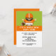 Convites criativos de chuvada de bebê com tema de futebol com adorável bebê jogador de futebol em uniforme laranja.