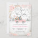 Celebre com estilo com este encantador cartão "Salve a Data" de chá de bebê de inverno, apresentando um caminhão vintage rosa carregando animais da floresta, balões e flores festivas. O fundo de pinheiro nevado e os delicados acentos pastel criam um design sazonal caprichoso perfeito para homenagear os futuros pais. Este convite personalizável combina elegância rústica com detalhes divertidos, tornando-o ideal para chás de bebê, temas neutros em termos de gênero e celebrações de inverno. Personalize com os detalhes do seu evento para criar uma lembrança memorável que os convidados vão amar.