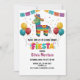 Este convite divertido e festivo de Chuvada de Bebê Fiesta apresenta um burro de piñata colorido usando um sombrero, faixas de papel picado, balões e confetes brilhantes.