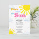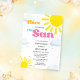 Celebre seu pequeno sol com este convite de chuvada de bebê “Here Comes the Sun”. Com um tema de sol brilhante, nuvens suaves e cores alegres, este design traz um sentimento caloroso e alegre para a celebração da sua bebê. BBY004