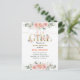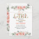 Cartão de convite de chuvada de bebê menina floral rosa e dourado