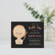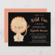 Convite de chuvada de bebê menino econômico "um doce pequeno selvagem está a caminho" com ilustração em aquarela boho de um filhote de leão com juba laranja e amarela em um fundo preto. "Selvagem" e o nome da futura mãe estão em um script laranja divertido e você pode personalizar se a chuvada é para um menino ou menina e outros detalhes da chuvada em tipografia simples que combina com a cor do leão.