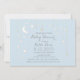 Suave e sonhador, este lindo convite apresenta lua crescente e pitada de estrelas delicadas sobre fundo azul bebê. Listras cinzas e brancas no verso adicionam um toque extra. Clique para personalizar ainda mais para alterar o estilo, tamanho e cor da fonte.