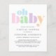 Quando amigos e familiares estão longe, celebre a futura mamãe com uma chuvada de bebê virtual. Este convite de chuvada de bebê neutro em termos de gênero e econômico apresenta "oh baby" em uma paleta de cores pastel modernas e negrito, incluindo azul, verde, rosa, roxo e laranja. Você pode personalizar facilmente com os detalhes da chuvada virtual.