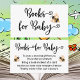 Compartilhe a alegria e as maravilhas do livro com o Bebê. Estilo de tipografia simples Livros para o Bebê para incluir com o seu convite de chá de bebê. Peça aos convidados para compartilhar um livro autografado com o nome deles para criar um tesouro de recordação. Moderno preto e branco com letra estilosa que inclui corações de amor. Inclui adoráveis abelhas bebês em aquarela.