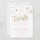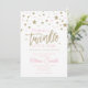 Convite de Chuvade Bebê Twinkle Twinkle Little Star com brilho dourado e estrelas rosa.