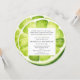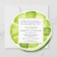 Um pequeno querido está a caminho! Celebre sua chegada iminente com este vibrante e refrescante convite de chá de bebê em forma de fatia de limão. O design apresenta uma bela ilustração em aquarela de um limão suculento, perfeito para um chá de bebê com tema cítrico. Este convite define um tom alegre e vibrante para seu evento especial, convidando os convidados a 'espremer' um pouco de diversão antes da chegada do bebê. A área de texto branca e limpa fornece espaço amplo para todos os detalhes importantes do chá de bebê, garantindo que seus convidados tenham tudo o que precisam para celebrar com você.