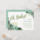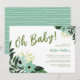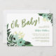 Design moderno e trendy de convite de chuveiro de bebê com uma borda floral tropical ousada e fonte de caligrafia estilosa. Personalize o design com os detalhes da sua festa de chuveiro de bebê com espaço em branco no verso para adicionar fotos ou texto adicional. Use as ferramentas de design para personalizar todas as fontes e cores do texto para criar um design único.