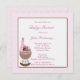Doce convite de chuveiro de bebê rosa e marrom menina bebê dormindo em um berço.