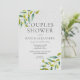 Projetado para coordenar com nossa coleção de casamento botânico de Folhas de Prado Fresco. Convite de chuveiro de casal moderno botânico de folhas de prado frescas com delicada folhagem verde aquarela, enquadrando os detalhes do chuveiro do casal em letras elegantes em um fundo de papel aquarela texturizado. Projetado por Thisisnotme©