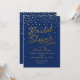 Convite de Chuveiro de Noiva Azul e Dourado com Confete de Folha.
