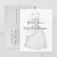 Cartão postal de convite de chá de noiva simples. Um lindo vestido de noiva pendurado com o véu de noiva esperando pelo grande dia. Um design de vestido elegante e caprichoso para o seu chá de noiva ou festa de casamento. Um vestido de noiva simples e moderno. Uma maneira bonita de desejar felicidades à noiva no dia do casamento!