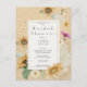 Este design de chuveiro de noiva apresenta uma bela moldura de girassóis de aquarela macia e outras flores de verão em um fundo amarelo manteiga desgastado. É romântico com um toque de vintage. Criado por Simply Farmhouse Press.