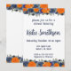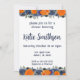 Este convite de chuveiro floral laranja e azul marinho é igualmente rústico e moderno, tornando-o perfeito para o seu próximo evento! Uma borda de rosas laranja e azul marinho, lírios, malmequeres, crisântemos e folhagens envolve uma combinação de texto azul marinho em letra cursiva e manuscrita para um visual atemporal e feminino! Este convite floral delicado é a adição perfeita para o seu próximo chá de noiva, chá de casamento ou chá de bebê!