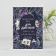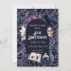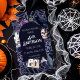 Traga o assustador para o seu próximo chá de bebê com este convite de chuveiro gótico vintage! Uma moldura de livros rústicos e poções é misturada com rosas empoeiradas vintage, flores de magnólia e cristais para criar um convite único que é perfeito para o seu próximo chá de noiva, chá de bebê ou casamento! A combinação de texto branco tradicional e sombrio torna-o o convite de Halloween perfeito para o seu próximo evento!