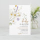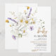 Este convite moderno para Baby Boom apresenta aquarela de flores silvestres violetas, camomila rústica, folhas verdes e galhos.