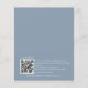 Orçamento Convite de Código QR para Casamento Azul Dusty Moderno e Simples. A cor e o tipo da fonte podem ser alterados através do menu de edição. Você também pode alterar as cores do texto e do plano de fundo em ambos os lados, se desejar. Um valor para o alternativo menor de 4,5 x 5,6 polegadas é usado como padrão para a opção de semigloscópio, que é recomendada para convites e é de espessura semelhante a um cartão postal. A opção satin é muito mais fina. Adicione seu código QR ao seu site de casamento no verso como uma opção conveniente para seus convidados para RSVP. Os códigos QR podem ser criados gratuitamente on-line. Basta pesquisar "Criador de código QR" e selecionar um dos criadores livres. Você também pode remover o código QR se desejar.