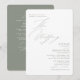 Simples convite de casamento moderno em sábio verde e branco. A caligrafia manuscrita única dá-lhe um aspecto chique. No verso adicione os detalhes do casamento e o código rsvp qr para ajudá-lo a economizar dinheiro se precisar de ajuda, cores ou peças adicionais, entre em contato comigo (Maria) usando o botão de contato abaixo.