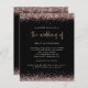 Um valor para o alternativo do ORÇAMENTO em tamanho menor de 4,5 x 5,6" de semirbrilho de 110 lbs, que é de espessura semelhante a um cartão postal (no entanto, não é adequado para uso como cartão postal). POR FAVOR, OBSERVE QUE HÁ UM convite por folha. Convite Preto de Código QR para Casamento Glitter Dourado rosa. Adicione seu código QR ao seu site de casamento no verso faz com que esta seja uma opção conveniente para seus convidados para RSVP e veja todos os detalhes sem a necessidade de RSVP separado e cartões de detalhes. Uma tipografia elegante está em ouro para o título principal de "Casamento de complementar o resto do texto que você pode personalizar facilmente, com bordas de confete falsa rosa dourado no topo e no fundo e também no verso.