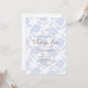Este convite de Primeira Comunhão apresenta um fundo floral suave em azul pastel com tipografia elegante em dourado e serifa. O design é moderno, mas atemporal, combinando um padrão delicado com letra cursiva sofisticada para um visual refinado e gracioso.