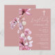 Este elegante cartão postal de convite de primeira comunhão floral transparente rosa poeira pode ser personalizado com suas informações em tipografia chic com seu monograma no verso. Criado por Thisisnotme©