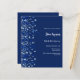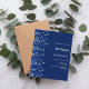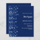 Um moderno, elegante e convite. Um fundo azul marinho decorado com confete azul. Personalize e adicione um nome e detalhes. Texto branco. 1 folha = 1 convite impresso de borda a borda.