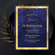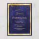 Na frente: Um cartão de convite de festas moderno e moderno para homens. Um fundo azul escuro, azul marinho. A cor azul é irregular. Com um falso quadro de ouro e um confete de ouro, letras coloridas de ouro. Modelos para informações sobre a sua parte. Fundo branco.