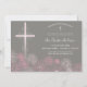 Esta elegante carta de convite de confirmação de 5 horas por dia, 7 dias por semana, apresenta uma cruz e ilustrada flor rosa margarida ao longo da parte inferior. A cor e o texto de fundo podem ser personalizados de acordo com o seu gosto pela sua ocasião religiosa especial.