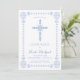 Este convite de confirmação elegante e clássico apresenta uma cruz desenhada de azul e branco com uma borda detalhada correspondente. Perfeito para sua ocasião religiosa especial, o texto e a cor de fundo podem ser personalizados de acordo com seu gosto.