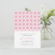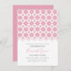 Este convite de confirmação de 4,5 x 6,25", moderno e simples, apresenta um padrão geométrico cor-de-rosa com uma cruz entrelaçada. Ideal para a celebração religiosa de uma garota, pode ser personalizado com o nome do seu filho e os detalhes do evento.