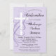Um convite de confirmação de lavanda bonito com uma cruz branca com espirais roxas ao seu redor.