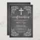 Nosso belo convite de confirmação de quadro de controle moderno apresenta um quadro de rolagem vintage, uma cruz branca e uma fonte de confirmação de rico chic, em um conselho preto popular. Sacudir nosso convite de confirmação para ver uma correspondência de volta para um toque especial extra. Convite perfeito para confirmação de meninas ou confirmação de meninos. Visite nosso compro para este convite em uma grande seleção de cores modernas e modernas.