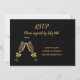 Um cartão de confirmação de casamento elegante e sofisticado com tema preto e dourado com copos de champanhe. O texto personalizável está em letra cursiva elegante contra um fundo preto. Este cartão apresenta dois copos de champanhe borbulhantes num brinde ao novo casal. Um design simples e elegante para o seu dia especial. Procure os convites combinando no mesmo estilo.