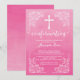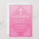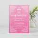 Nosso belo convite de confirmação de aquarela moderno apresenta um quadro de rolagem vintage, uma cruz branca e uma fonte de confirmação de rico chic definida em um popular fundo de aquarela rosa. Sacudir nosso convite de confirmação para ver uma correspondência de volta para um toque especial extra. Convite perfeito para uma confirmação de meninas Visite nosso compro para este convite em uma grande seleção de cores modernas e tradicionais.