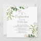 Lindos convites de Confirmação com uma coroa verde macia e cruz sobre fundo branco. Sacudir nosso convite para ver uma coordenação de volta para um toque especial extra. Visite o nosso compro para ver toda a nossa coleção de folhas.