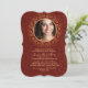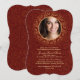 Um convite formal e muito elegante para sua celebração de confirmação. O fundo vermelho-escuro tem espirais de abstrato e uma janela de fotos redonda dourada. Quer economizar dinheiro? Impressão deste design no papel básico dos cantos quadrados. O cartão é fácil de personalizar com seu texto, fonte, cor da fonte e escolha de seis tipos de papel. Não exatamente o que você está procurando? Todos os nossos produtos podem ser personalizados para atender às suas necessidades sem custos adicionais. Basta entrar em contato conosco em askcottonlamb@gmail.com Coordenando os produtos disponíveis: