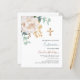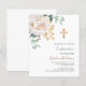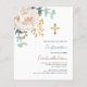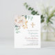 Um verde floral branco, eucalipto e uma cruz ouro. Personalize e adicione um nome e detalhes. 1 folha = 1 convite impresso de borda a borda.
