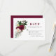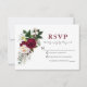 Cartão de Confirmação de Presença de Casamento Floral Verde Burgundy Aquarela Elegante inclui peônias, folhas de eucalipto e outras folhagens lindas.