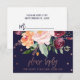 Este cartão de pedido de música com tema floral outonal em dourado rosa é perfeito para um casamento de outono. O design apresenta um deslumbrante buquê de flores cor de rosa, laranja pêssego e borgonha marsala com tipografia em folha de ouro rosa falsa e confetes. Monte sua lista de convidados e a lista de músicas para a pista de dança de uma só vez! Este cartão de resposta de casamento convenientemente pergunta aos convidados se eles poderão comparecer ao seu casamento e também qual música os fará dançar.