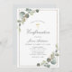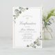 Um elegante design floral com confirmação de folhagem de eucalipto com aquarela. Você pode alterar as cores e os recursos de texto neste convite.