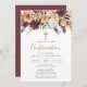 Convide seu convidado com nosso elegante e moderno convite de confirmação floral de burgundy que apresenta a cor d'água burgundy floral. Personalize com seus detalhes de evento em layout simples e fonte elegante de estilo manuscrito.