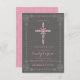 Este convite de confirmação elegante e clássico apresenta uma cruz desenhada de pinks e branco com uma borda detalhada correspondente. Perfeito para a ocasião religiosa especial de sua garota, o texto e a cor de fundo podem ser personalizados de acordo com seu gosto.