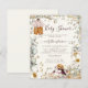 Convite de chá de bebê Cream Vintage Bunny Boy. Uma alternativa menor de 4,5” x 5,6” econômica. Disponível em papel cartão de 110 lb SEMI BRILHANTE ou em papel de 80 lb de acabamento SEDA. Envelopes são opcionais. Este design em estilo vintage tem um coelhinho usando um chapéu espiando de trás de flores e folhagens no canto inferior direito, e uma roupinha de bebê menino pendurada num galho de árvore no topo, sobre um fundo creme. Você pode personalizar facilmente todo o texto de acordo com suas necessidades. Um fundo colorido coordenado está no verso. Você também pode alterar as fontes e as cores do texto, se desejar, através da opção "Clique para personalizar ainda mais", bem como as cores de fundo de ambos os lados.