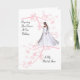 Pedido e convite de dama de honra com imagem de uma bela noiva e cerejeiras em flor.