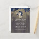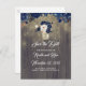 Convites de data de casamento em azul marinho com flores em jarra de pedras rústicas