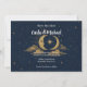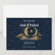 Anuncie seu próximo casamento com este elegante convite de "Escrito nas Estrelas". Com uma impressionante lua crescente dourada e estrelas sobre um céu noturno azul-marinho profundo, este design místico é perfeito para o seu casamento temático celestial. Personalize facilmente com seus nomes, data e local para dar aos seus convidados uma primeira olhada mágica no seu dia especial.