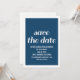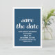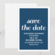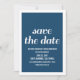 Anúncio de Data de Salvamento Charm em azul escuro e branco com um design de tipografia caprichoso. Este convite de data de salvamento moderno e trendy é fácil de personalizar com os detalhes do seu casamento. Para mais opções de personalização, clique no botão Personalize.