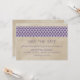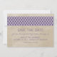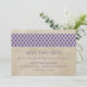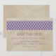 Anúncios de Data de Salvamento Quatrefoil Rústico elegantes e sofisticados com um fundo com textura vintage e uma borda de padrão moderno em roxo. Fácil de personalizar, basta adicionar os detalhes do seu casamento. Clique em "Personalizar" para encontrar mais opções de personalização.