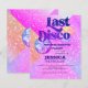 Convite de despedida de solteira Retro 70's Última Bola de Discoteca ORÇAMENTO acessível com bolas rosa e roxas cintilantes sobre um fundo brilhante. +++++++++ Adequado para uma celebração de noiva retrô moderna e trendy. +++++++++++++++++++ POR FAVOR, LEIA ISSO ANTES DE COMPRAR! Este é um cartão de orçamento acessível impresso em uma folha de papel (cada folha tem um cartão). ++++ Para a melhor relação preço-qualidade, nosso conselho é escolher o tipo de papel Semi-Brilho (é grosso o suficiente para ser usado para papelaria) ++++ Se você precisar de envelopes, escolha a OPÇÃO DE ENVELOPE. +++ Verifique novamente todas as informações e ortografia do seu texto porque você receberá exatamente o que vê - ninguém mais verificará nada antes da impressão. ++++ Este cartão é projetado para o tamanho 4,5" x 5,6". No caso de você escolher outro tamanho do cartão e o texto ultrapassar a página, tudo precisará